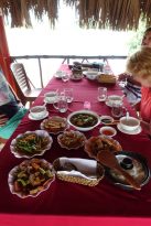 Auf der Plantage wurde uns als spätes Mittagessen noch ein köstliches Mahl serviert, mit vielen vegetarischen Optionen. Neben viel Gemüse, Tofu und Reis gab es auch die bekannten, wohlschmeckenden Frühlingsrollen. Alles war frisch und liebevoll zubereitet. Gegen 15 Uhr machten wir uns dann wieder auf die Rückfahrt und stoppten noch für 20 Minuten an einer Süßigkeitenfarbrik. Diese war nicht sonderlich erwähnenswert, da es eher einer Verkaufsveranstaltung ähnelte. Auf der Rückfahrt bis zum Minivan waren wir alle ziemlich müde, von der frischen Luft und dem leckeren Essen und genossen den Fahrtwind. Dann ging es ca. halb vier zurück nach Saigon. Unser Hotel erreichten wir gegen 18 Uhr.