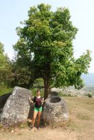 Die 1. Ebene befindet sich ca. 12 km von der Stadt Phonsavan entfernt und ist Flächenmäßig und mit ungefähr 350 Krügen die Größte. Eintritt in Höhe von 15.000 Kip müsst ihr im Touristen Informationscenter am Eingang zahlen und noch einmal 2.000 Kip zum Abstellen des Rollers direkt am Beginn der 1. Ebene. Die Fläche ist überschaubar und von einigen kleinen Hügeln übersäst. Die Tonkrüge wirkten zu Beginn eher wie Steine. Einige waren sogar mit einer Art Deckel versehen. Wir fanden den Anblick der Tonkrüge nicht sehr spektakulär, da die Krüge von der Bombardierung der Amerikaner im Vietnamkrieg schon ziemlich beschädigt worden sind.