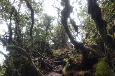 Die Natur im Mossy Forest ist spektakulär. Mit Moos übersäte Bäume, viele blühende Pflanzen, wie Rhododendronbäume, fleischfressende Krugpflanzen (Bild mitte-links) und Heilpflanzen konnten wir auf dem Weg bestaunen. Gleich am Eingang in den Wald zeigte der Guide uns eine Pflanzenart, die nur hier wächst – die Kobralilie. Ihr weinroter Blütenkrug war ziemlich groß und schön anzusehen (Bild mitte-rechts). Auch der Wald war etwas Besonderes. Dieser sah aus, wie verzaubert, mysteriös im Nebel und einfach atemberaubend schön. Der Rundweg dauert ca. eine halbe Stunde.