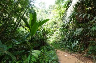 Auf dem Rückweg entdeckten wir wiederum andere Blumen und der Guide hielt eine Überraschung bereit. Zur Erfrischung schlug er frischen Bambus auf, sodass wir nach der Wanderung das frische Wasser (welches der Bambus enthielt) trinken konnten.