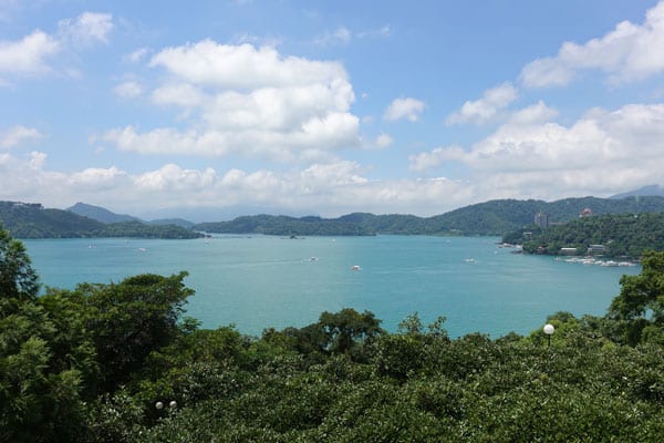 Wir wollen, wie gewohnt, alles vom See sehen und haben uns deshalb für eine 33 km lange Fahrradtour entschieden. 11 Uhr starteten wir in Yuchi-Town und umrundeten den See innerhalb von 7 Stunden. Für die Tour solltest du aber in guter Kondition sein und viele bergauf Strecken meistern können. Man muss aber dazu sagen, dass der Radweg nicht komplett um den See gebaut ist, er führte auch entlang der befahrenen Straße und zwischendurch mussten wir auch immer mal absteigen und das Fahrrad die Treppen hochschieben. Nichts desto trotz siehst du bei einer Fahrradtour mehr vom See und seinen wechselnden Wasserfarben und bist viel flexibler. Wenn du hingegen nicht so gut konditioniert bist, dann kannst du auch den Shuttelbus um den See herum benutzten. Dieser hält an jeder Sehenswürdigkeit. Eine weitere Möglichkeit sind die Boote, die euch an verschiedene Uferanlegestellen bringen und die ihr spontan vor Ort buchen könnt.