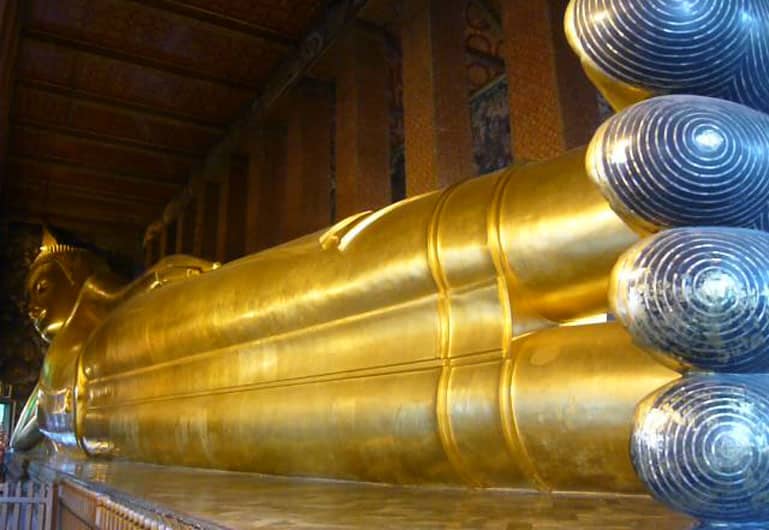 Die meisten Besucher kommen hier her, um den großen liegenden Buddha zu sehen. Mit 46 m Länge und 15 m Höhe, liegt er in einem schmalen Gebäude, aufgestützt auf seinem Arm. Der Buddha besteht im Inneren aus Ziegelsteinen und die Außenfläche wurde mit Gips überzogen, der wiederum mit Blattgold verziert wurde. Die Füße des Buddhas sind mit Perlmutt geschmückt und mit 108 Glück verheißenden Merkmalen des Buddhas (lak sa na) gekennzeichnet. In der Tempelanlage befinden sich zudem viele Thai-Massagepavillons. Angeblich ist What Pho der Geburtsort der Thai-Massagen. Der Eintritt mit 100 BHT ist im Gegensatz zum „Grand Palace“ ein Schnäppchen.