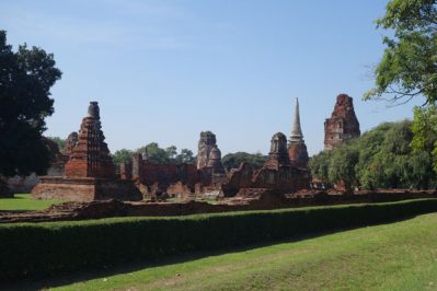 Im Zentrum des Areals befindet sich der Wat Mahathat, der königliche Tempel. Früher beherbergt der Tempel Reliquien des Buddha und war die Residenz des höchsten geistigen Würdenträgers. Die Anlage wurde leider durch den Angriff der Birmesen nicht verschont, aber trotzdem kann man die vergangene Schönheit des Tempels noch erahnen.