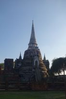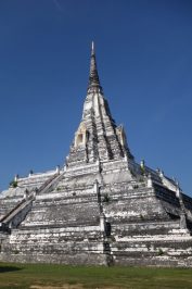 Der Wat Chai Wattanaram liegt im Südwesten des Tempelbezirkes und ist wohl der beeindruckteste Tempel der ganzen Anlage. Über den Fluss gelangt man durch eine große Brücke. Mit seinen 35 m hohen „prang“ (Zentralturm) hat er uns an Angkor Wat erinnert. Der 1630 erbaute Tempel diente als Krönungshalle und ist noch recht gut erhalten. Im Inneren befindet sich eine kleine Miniaturnachbildung des früheren, unzerstörten Tempels. Die schönsten Bilder entstehen, wenn ihr den Tempel bei Sonnenunter- oder Sonnenaufgang fotografiert.