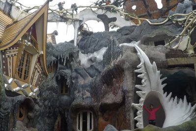 Heute ist es eher ein kleines Hotel und für Besucher zugänglich. Die Gebäude wirken wie Felsen in einem grünen Garten. Wege, die aussehen als ob sie von Lava erschaffen sind, führen hoch über die Dächer, von denen ihr eine super Aussicht über Da Lat genießen könnt. Das kleine Mini-Hotel bietet schöne, fantasievolle Zimmer. Keines ähnelt dem anderen und alle besitzen sie nach ihrer Gestaltungsart ein Thema.
