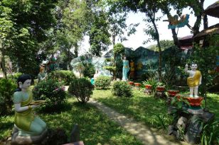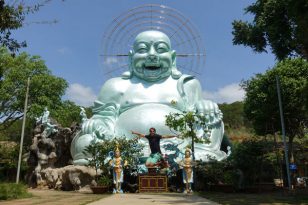 Auf der rechten Seite, im Park der Tempelanlage, findet ihr noch einen riesigen weißen, dicken, lächelnden Buddha. Schaut man diesen an, bekommt man gleich selbst ein Lächeln im Gesicht! Im Außenbereich findet ihr zudem noch einen kleinen Miniatur-Garden mit Figuren, die eine buddhistische Geschichte erzählen.
