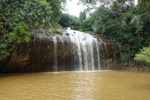 Vielleicht ist dem einen oder anderem von euch das Fotomotiv bekannt, auf dem mehrere in saframfarbige Gewänder gehüllte Mönche auf einem Vorsprung direkt vor einem Wasserfall entlanglaufen. Dieses berühmte Fotomotiv wurde am Pongur-Wasserfall (ca. 50 km von Da Latentfernt) aufgenommen. Diesen wollten wir natürlich ansehen. Das Parken des Motorrollers kostete 5.000 VND und der Eintritt 10.000 VND pro Person. Der Wasserfall liegt in einem bewaldeten Landstück und man muss eine kleine Parkanlage durchqueren, um an sein Ufer zu gelangen. Wir waren beim Anblick des Wasserfalls nicht enttäuscht, nur die Mönche haben gefehlt – aber man kann ja nicht alles haben. Trotzdem war der Pongur-Wasserfall die weite Anreise wert. Bei angenehmen Temperaturen kann man sogar am Fuß des Wasserfalls in einem großen Wasserbecken schwimmen. An den Seiten befinden sich zudem einige Picknick- und Campingplätze.