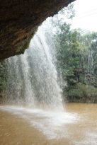 Ein paar Meter von der Linh-An-Pagode entfernt, befindet sich der Elefanten-Wasserfall, der am meist besuchte Wasserfall der Gegend. Für das Parken haben wir 5.000 VND und 20.000 VND pro Person Eintritt bezahlt. Ein paar kleine Treppen und einen rutschigen Weg über Felsen müsst ihr bis zum Wasserfall überwinden. Dieser donnert gewaltig und breit einen Felsvorsprung herunter. Auf der Aussichtsplattform solltet ihr euch nicht scheuen nass zu werden, ebenso wenig in dem Felsvorsprung neben dem Wasserfall, in den ihr klettern könnt, um eine kleine Höhle hinter dem Wasserfall zu besuchen. Im Großen und Ganzen war der Elefanten-Wasserfall trotz des schmutzigen Wassers für uns ein schöner Besuch.
