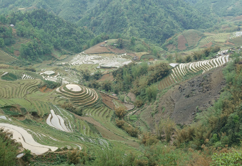 Für die in Sapa gebuchten Eintagestrekkingtouren endet hier der Ausflug. Wir sind hingegen noch weitergefahren bis zur Topas Ecolodge und noch ein Stück weiter, um das Tal herum. Von hier besitzt man fast die Beste Aussicht auf die unendlich erscheinenden Reisterrassen. Die Straßen werden hier ruhiger und kaum ein Tourist verirrt sich noch bis hier her, aber es lohnt sich! Dieser Ort ist das Ziel der zwei Tage andauernden Trekkingtouren.