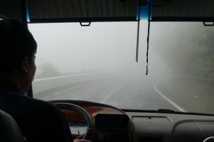 Die normalen Busse und die meisten Autos verkehren nicht mehr über den Pass sondern fahren durch den Tunnel nach Da Nang. Dabei bietet der Hai Van Pass eine spektakuläre Aussicht. Leider nicht für uns. Das Wetter verschlechterte sich und wir konnten teilweise keine zehn Meter weit sehen. Ganz oben auf dem Pass kannst du noch ein paar Geschützstellungen und Aussichtstürme aus dem Vietnamkrieg besichtigen. Eintritt wird nicht verlangt, die Anlage ist aber auch nicht besonders spektakulär und gepflegt. Zur Aussicht können wir wiederrum keine Auskunft geben, da die Sicht gleich Null war. Als wir auf der Südseite des Passes herunterfuhren, wurde das Wetter schlagartig besser. Leider war es schwierig aus dem fahrenden Bus mit verregneten Fenstern vernünftige Fotos zu machen. Entschuldigt daher die Qualität der Fotos.