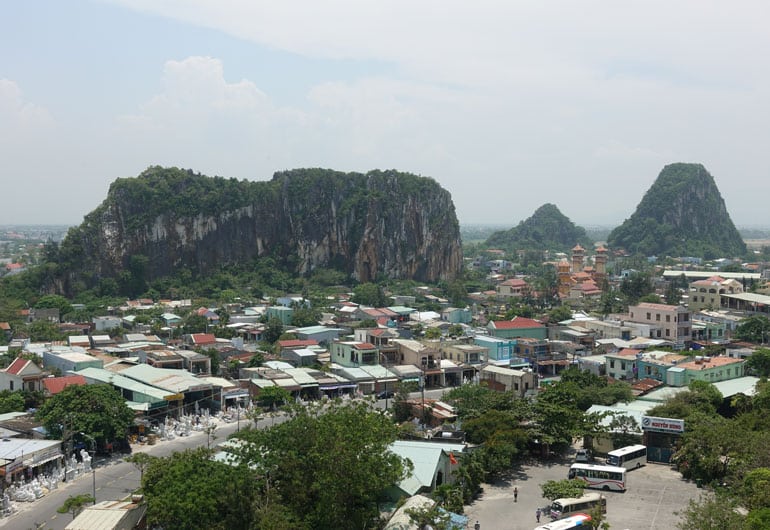 Der Marble Mountain ist eine der größten Sehenswürdigkeiten von Da Nang. Wir stoppten hier für ca. 30 Minuten. Der Eintritt kostet 40.000 VND und nochmal 30.000 VND für den Fahrstuhl. Man hätte den Berg auch ca. 10 Minuten hochwandern können, jedoch entschieden wir uns in Anbetracht der knapp bemessenen Zeit für den Fahrstuhl. Oben angekommen hast du tolle Aussichten auf Da Nang und das Meer.