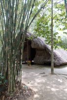 Nach ca. 1,5 Stunden Fahrt erreichten wir die Cu-Chi Tunnel. Von außen konnte man das Erwartete nicht erkennen. Eine Karte am Eingang zeigte den Abzulaufenden Pfad für Touristen auf. Für die Besucher wurde ein kleines Museum errichtet und in einem Erdaushub, der mit Palmenwedel bedeckt wurde, konnte ein Propaganda-Video angesehen werden, der Inhalte des Vietnamkrieges und des Tunnelbaus preisgab.