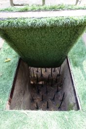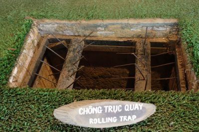 In Cu Chi wurden leider sehr viele Tunnelsysteme bereits zugeschüttet und ihr werdet nur einen kleinen Eindruck des gigantischen unterirdischen Systems wahrnehmen können. So werdet ihr auf eurem weiteren Weg mehrere Erdlöcher begegnen, bei denen es sich um Eingänge in das Tunnelsystem handelt. Diese wurden mit Gras bedeckt oder befanden sich unter Baumstumpfen. Sie wurden durch einen markanten Stein markiert, damit die Vietcong den Tunneleingang fanden. Auf dem Museumsgelände könnt ihr selbst die Tunnel einmal ausprobieren. Ihr werdet wahrscheinlich auch denken, dass diese viel zu klein sind und eher wie ein Kaninchenloch oder Fuchsbau wirken. Aber die vietnamesischen Soldaten waren so klein und passten tatsächlich durch diese Erdlöcher hindurch!